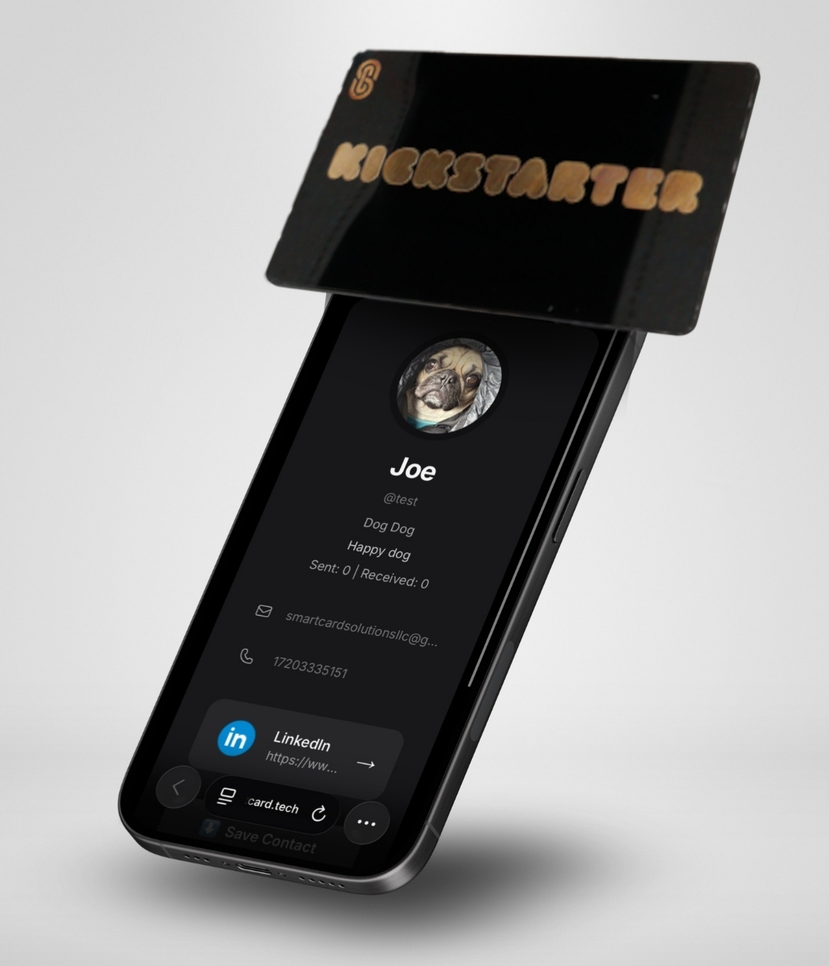 SmartCard is a premium titanium card with NFC technology that instantly shares your contact information when tapped to any smartphone. Think of it as a digital business card that never goes out of date.