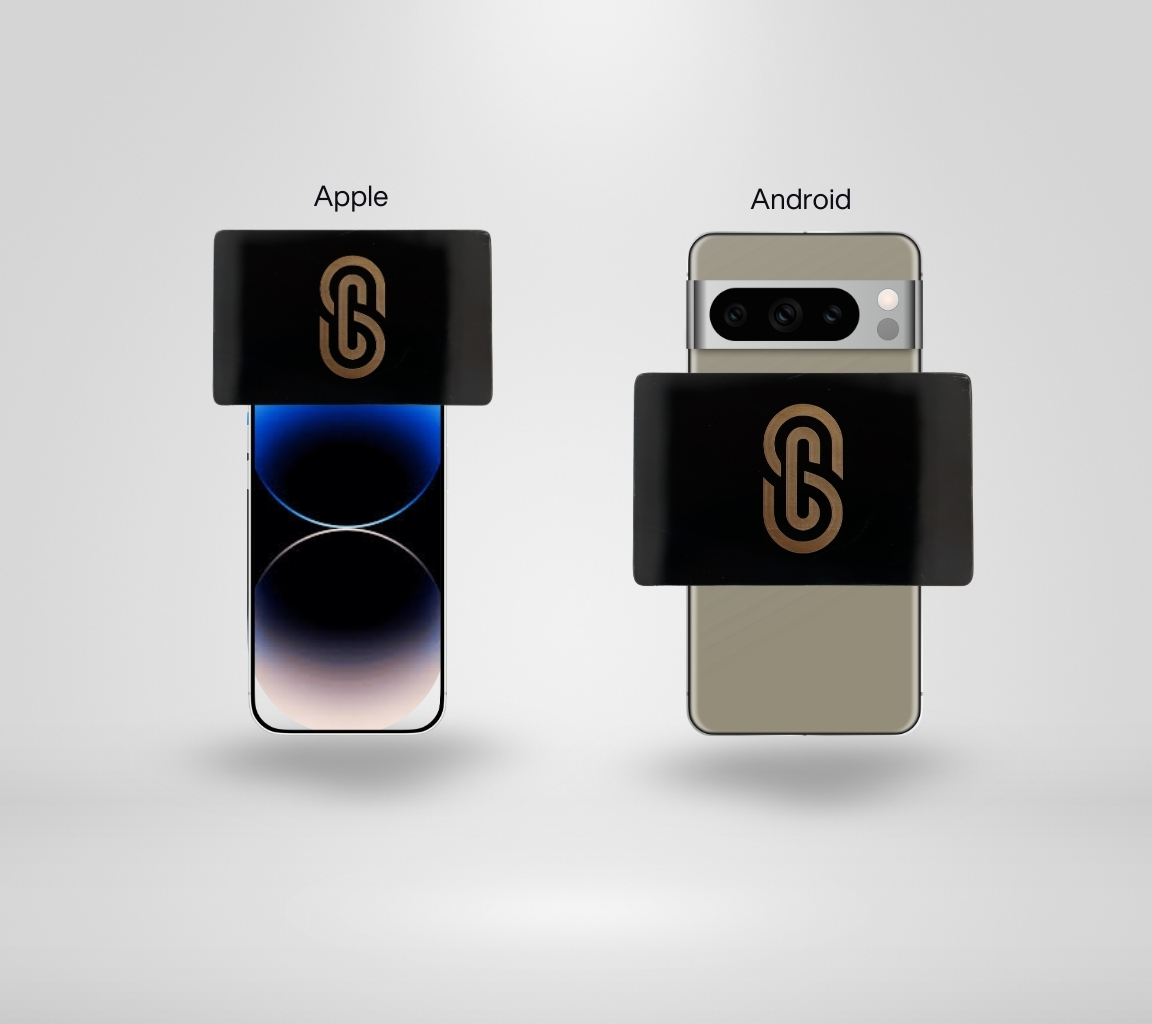 Depending on if you have an Apple or Android device, use the refrence photo to locate and "tap" your NFC