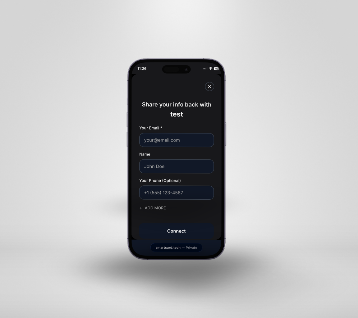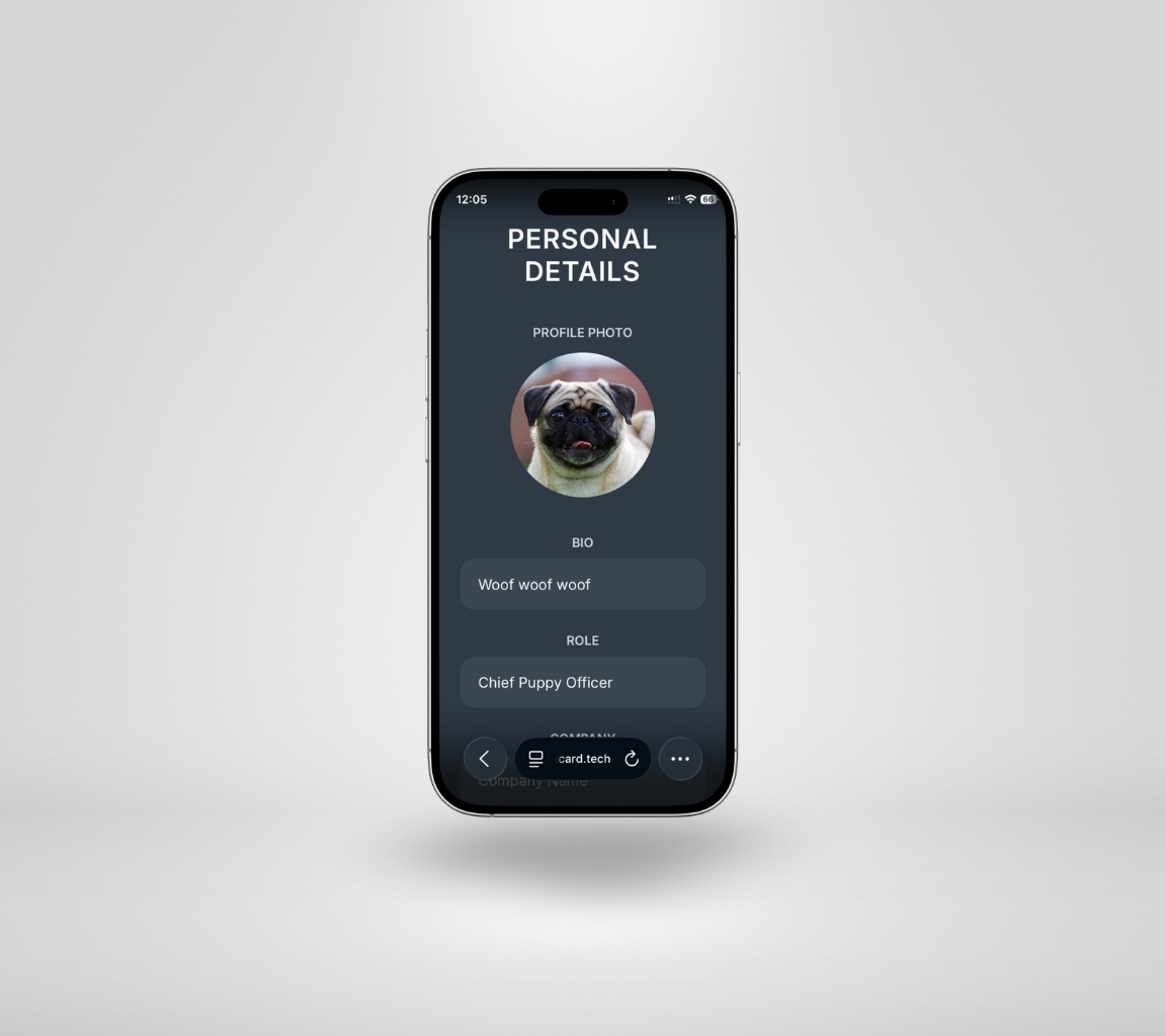 Once the card is claimed, you will be prompted to submit your personal contact information. This is what people will download when saving your contact, so make sure its correct!