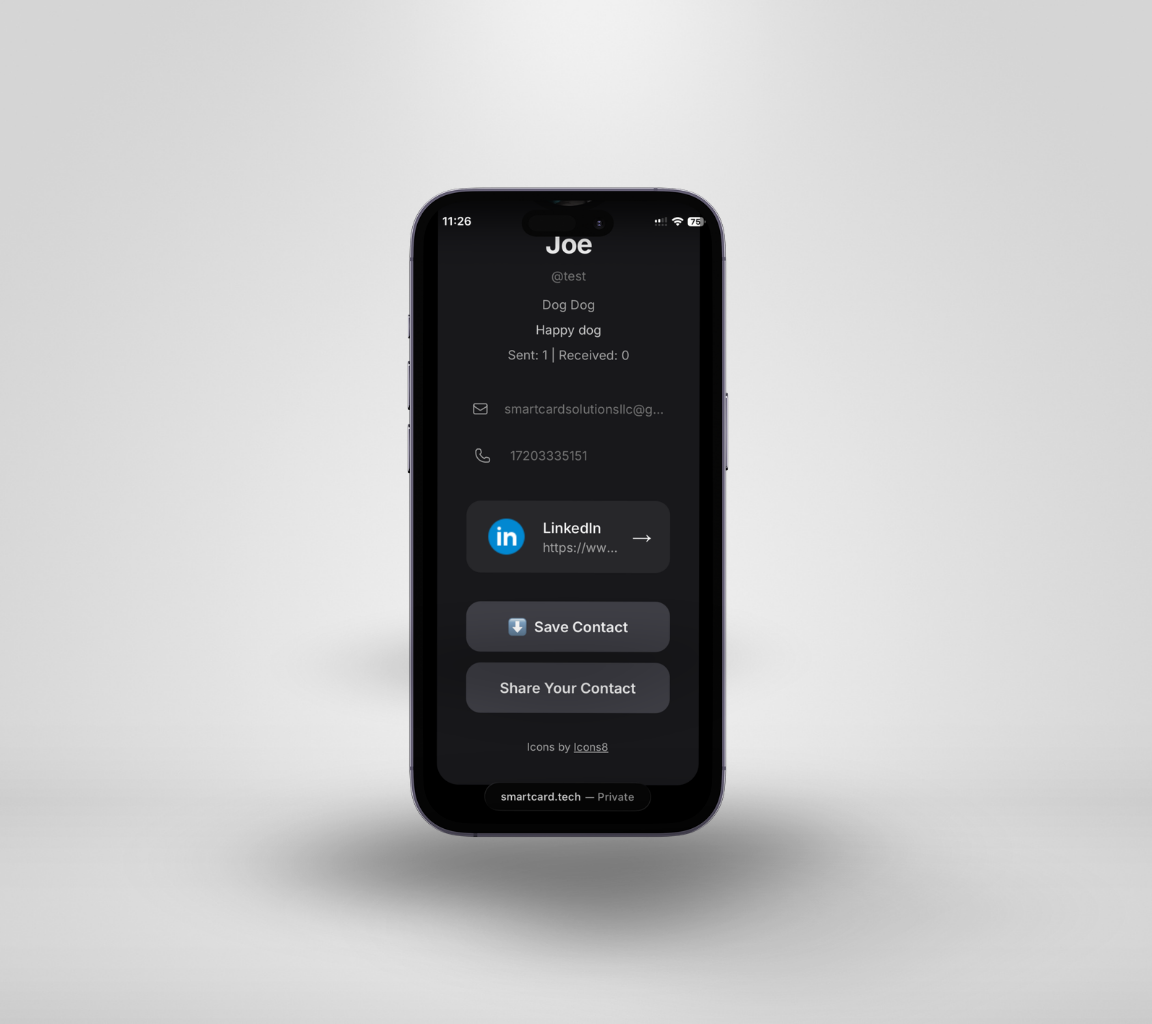 This is where you make SmartCard your own. Add your employment info, bio, and photo to create a profile that represents you to your contacts.