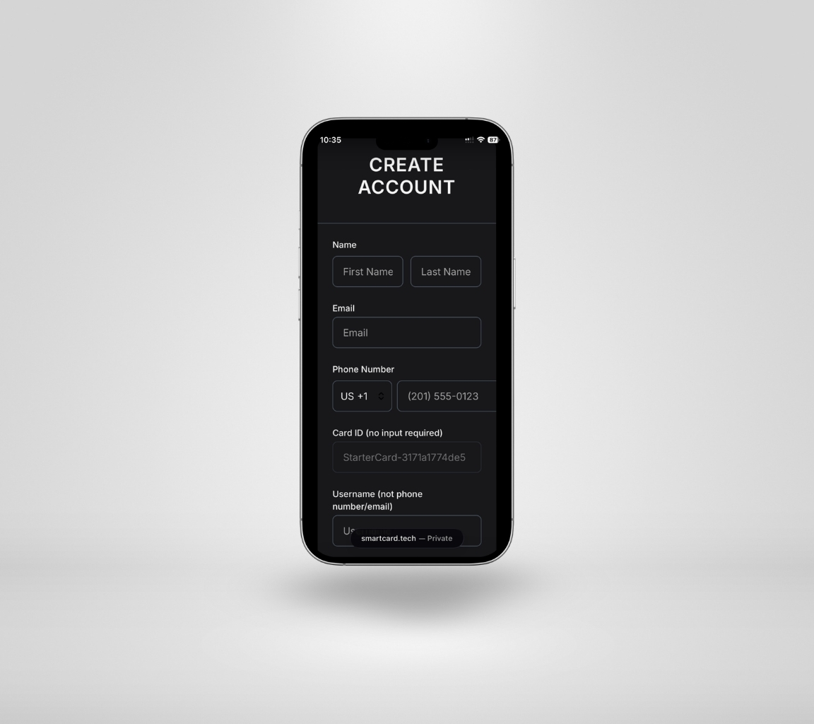 Username - This will be associated with your account across all Smartcard products, similar to a social media handle. Choose whatever you like!